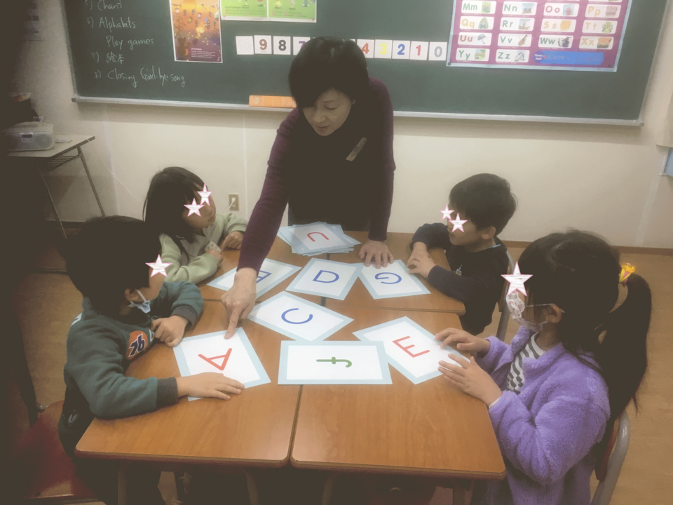 市内大谷幼稚園様とご縁があり、 6月から年長児 48名を 4クラスに分けて英語のレッスンをしています。
