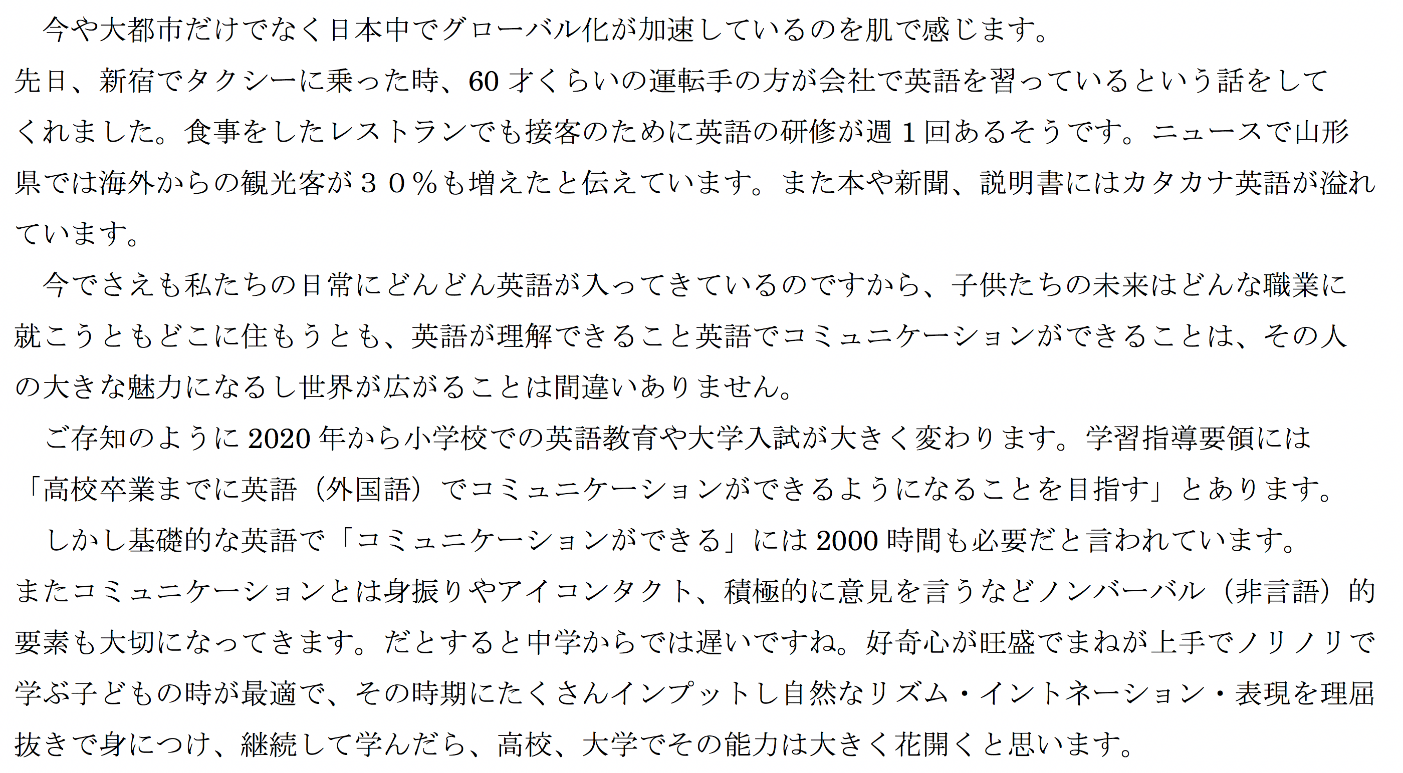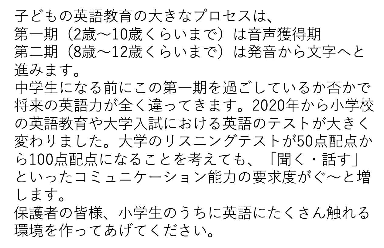 という感じで一回目から4回目まで楽しく英語のレッスンをして5回目、最後のレッスンには保護者の方にも参加していただきました。