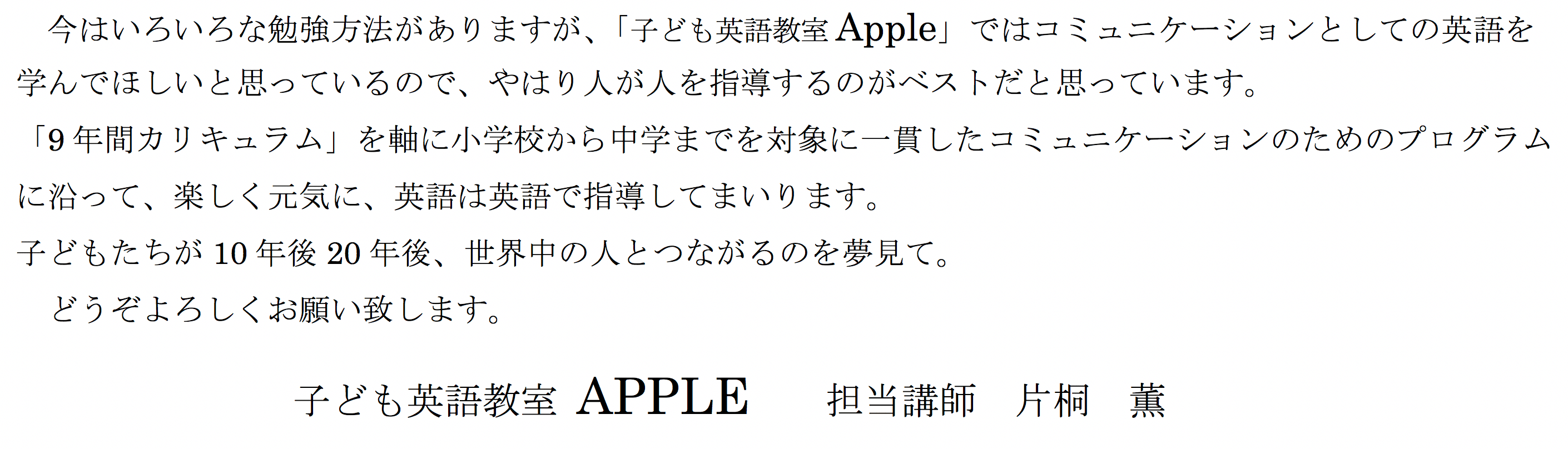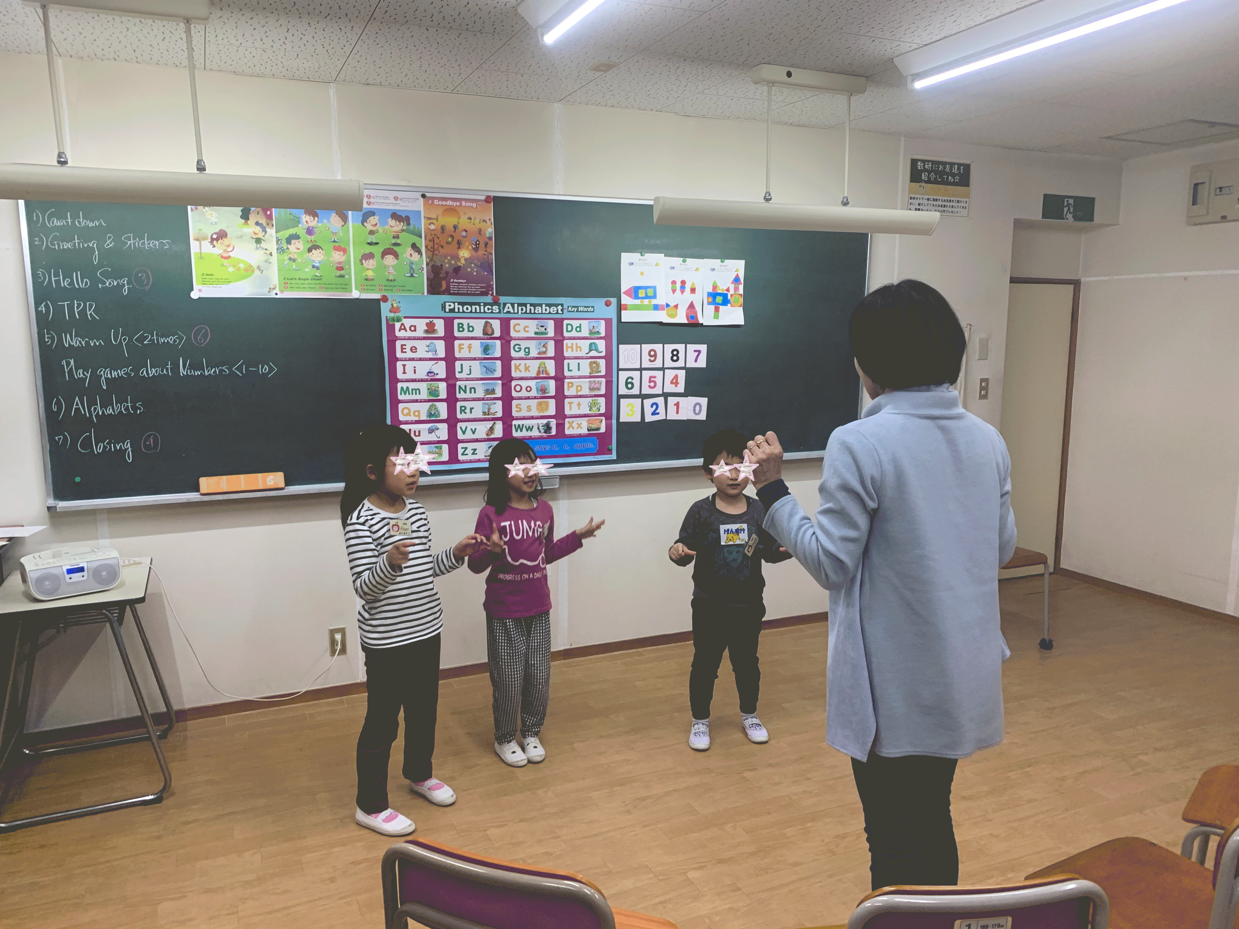 市内大谷幼稚園様とご縁があり、 6月から年長児 48名を 4クラスに分けて英語のレッスンをしています。